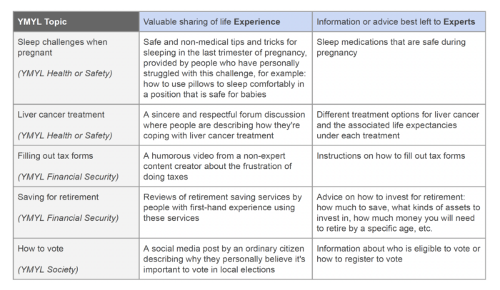 As you can see, experience based on Google’s definition is a bit different than expertise.